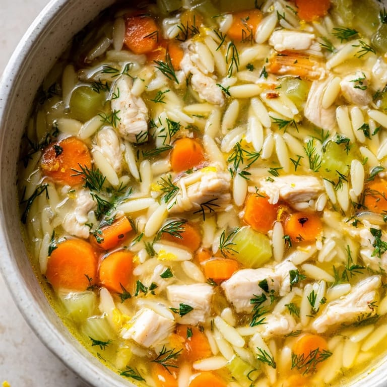 If you want a richer, silkier soup, try the Greek avgolemono method by whisking two egg yolks with a ladle of hot broth, then stirring it back into the pot off the heat. It creates a velvety texture that clings to everything. I've also added handfuls of baby spinach or frozen peas in the last few minutes for extra color and nutrition. Some nights I swap the orzo for rice to make it gluten-free, and it's just as satisfying, though the texture is a little heartier.