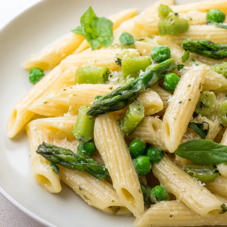 Pin It The first farmers market of April always pulls me toward the asparagus bunches like a magnet, those tight little spearheads promising that winter has officially lost its grip. I came home with armfuls of green everything and ended up throwing together this pasta in what I call a "kitchen sink moment" when hunger strikes and creativity takes over. The lemon zest was actually an accident I reached for the wrong microplane and ended up loving how it cut through all that creamy richness.
