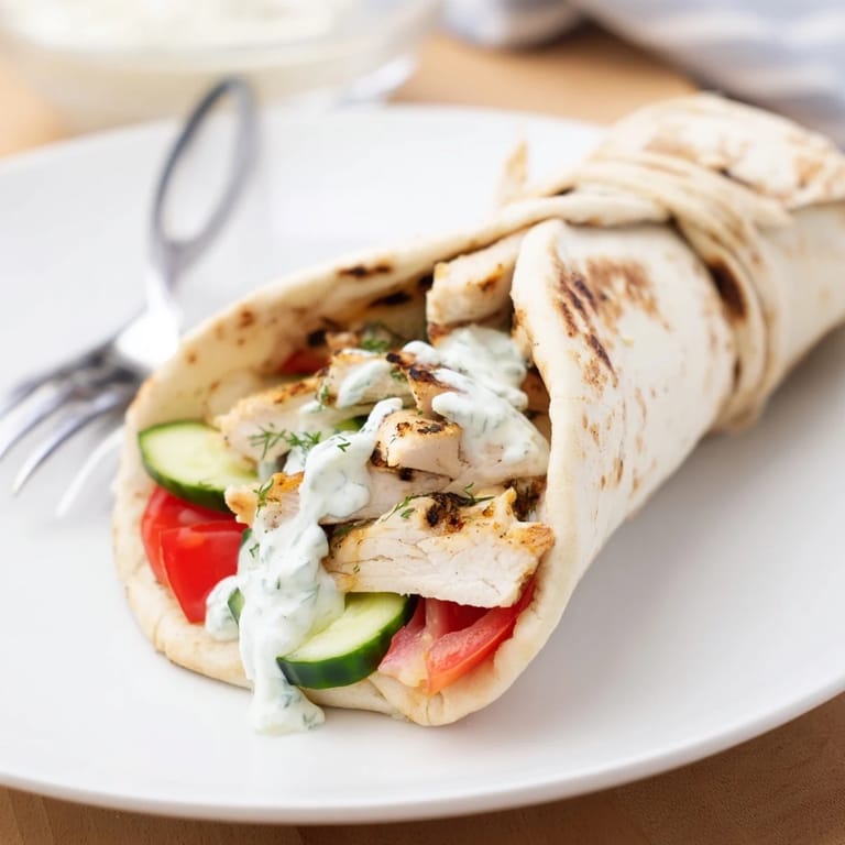 Pin It My neighbor Maria taught me this wrap on a hot July afternoon when I had twenty minutes before soccer pickup and nothing planned for dinner. She tossed chicken strips into a bowl with lemon and oregano like it was second nature, talking the whole time about her grandmother's kitchen in Crete. The smell of garlic and olive oil mixing with the sizzle from her pan made me forget I was stressed. I scribbled notes on a grocery receipt and have made these wraps at least once a week ever since.