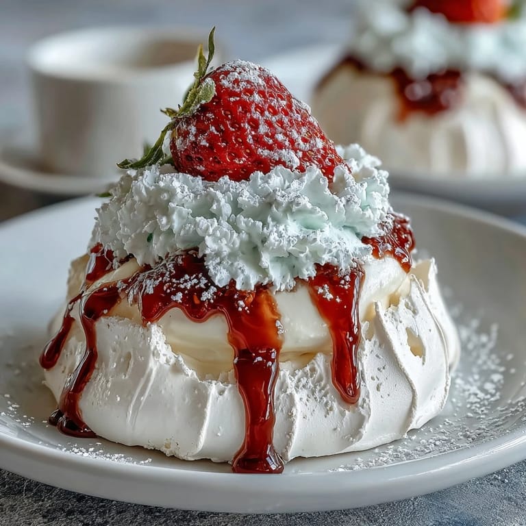 This recipe combines simple pantry ingredients with fresh produce to create a show-stopping dessert. With some patience and care during baking and cooling, the result is a crisp but tender meringue base that pairs beautifully with creamy topping and fruity sweetness.