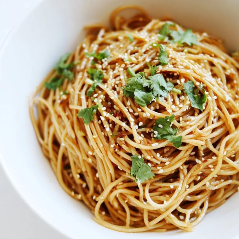 Pin It I was standing in my kitchen on a sticky summer evening, staring at a half-empty fridge and zero motivation to turn on the oven. My neighbor had just dropped off a bag of cucumbers from her garden, and I remembered a noodle salad I'd had at a tiny lunch counter years ago. The memory of that cold, slippery tangle of noodles coated in something nutty and fiery made my mouth water. I boiled water, whisked together whatever I had, and twenty minutes later I was eating straight from the bowl, barefoot on the back steps.