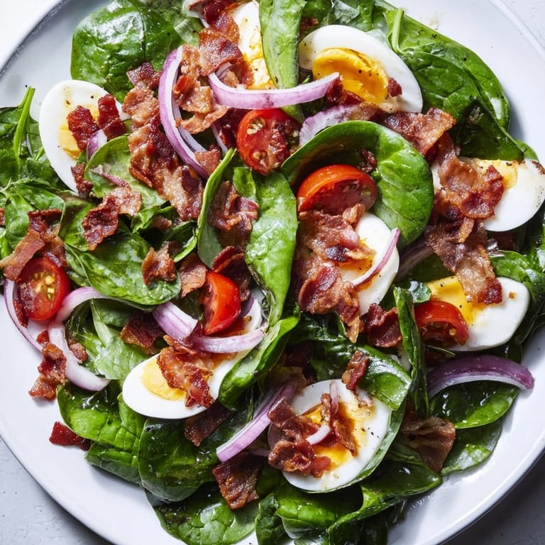 Most people think salads have to be completely cold, but the genius of this one is that the warm bacon and the heat from boiling the eggs create this gentle warmth that somehow makes the spinach taste more tender and more itself. The contrast between the warm protein and the cool, peppery greens is what keeps you coming back for another bite instead of just eating it as an obligation. It's one of those small cooking discoveries that changes how you think about salad entirely.