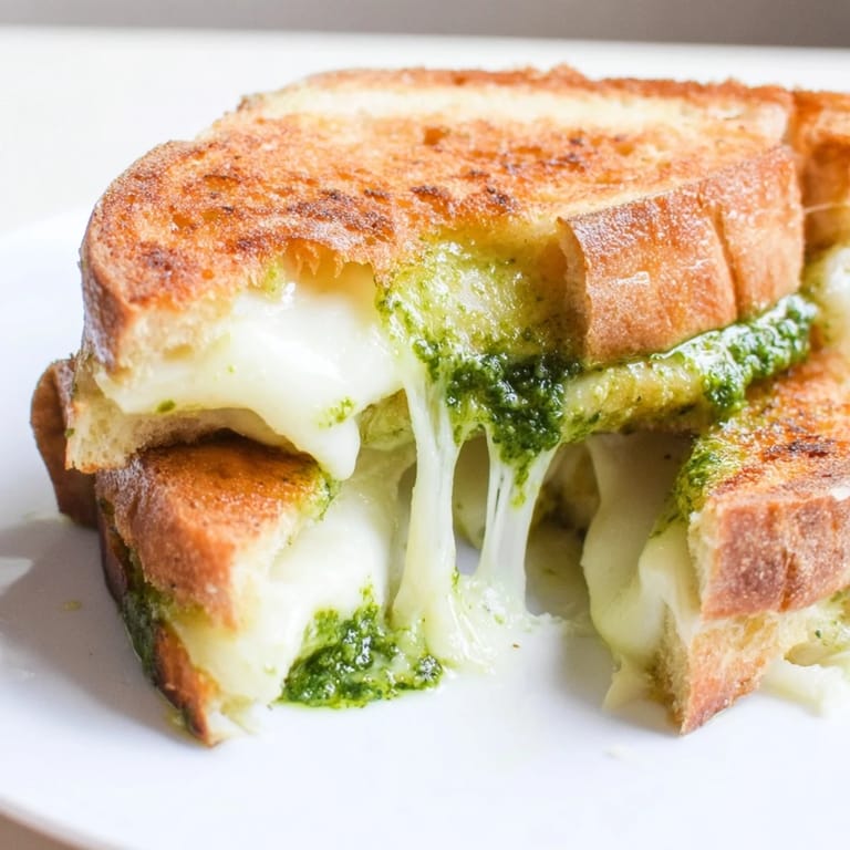 Pin It The smell of garlic hitting hot olive oil always pulls me back to the afternoon I threw spinach into my usual basil pesto, mostly because I had too much of it wilting in the crisper. I blended it anyway, tasted it on a spoon, and knew immediately it belonged on a grilled cheese. The first sandwich came out so crispy and green-streaked that I made another one right after. It became the kind of lunch I craved on gray days when I needed something both comforting and a little bit bright.